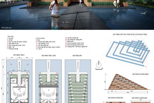 - Ruộng bao phủ công trình giúp điều hoà vi khí hậu & nguồn nước, đem lại lương thực, đồng thời tạo được hình ảnh đặc trưng (là sự hoà trộn của ruộng bậc thang & mái nhà truyền thống) ở cả ngoại thất và nội thất).